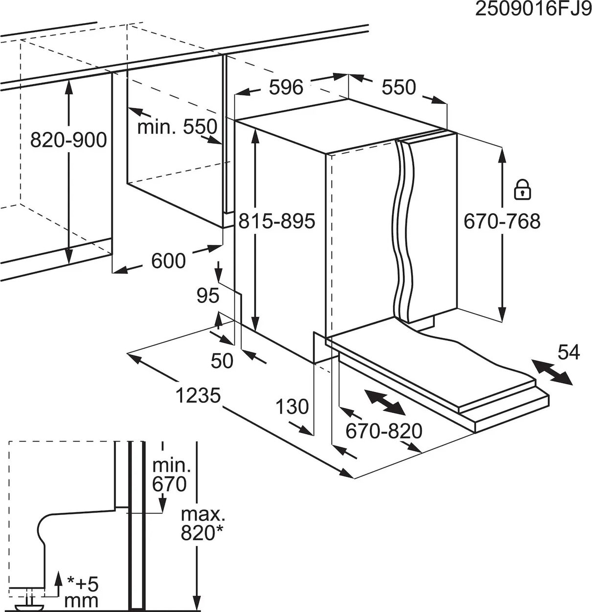 - Inbouwmaten (h x b x d): 82.0-90.0 x 60.0 x 55.0 cm