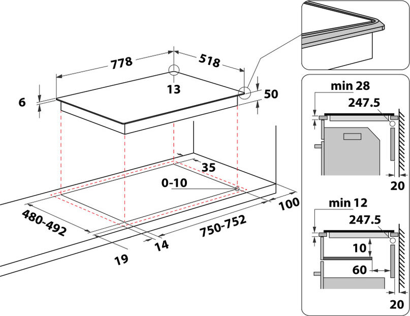 - Materiaal basisoppervlak: Ceramic Glass (Keramisch glas)