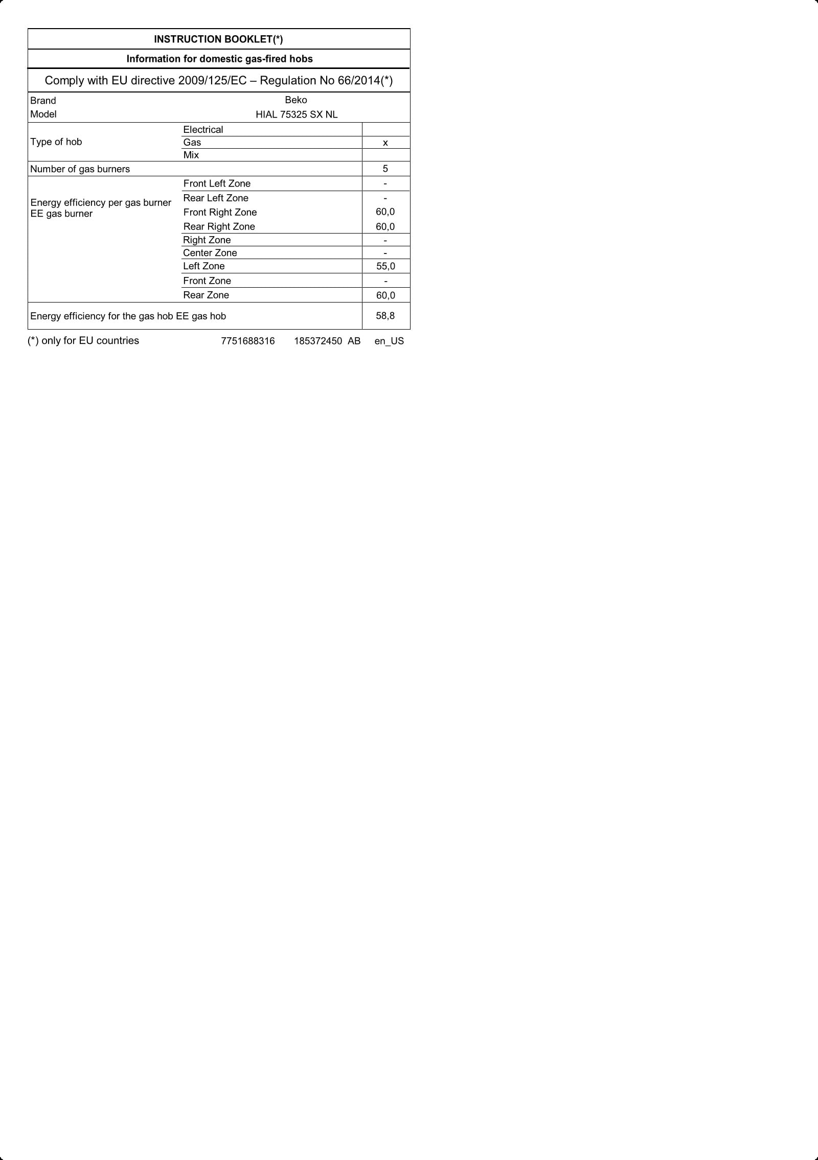 Onze productspecialisten hebben de belangrijkste eigenschappen van de fabrikant overgenomen en voor u op een rij gezet:BEKO kookplaat inbouw HIAL 75325 SX NL- Breedte: 75 cm