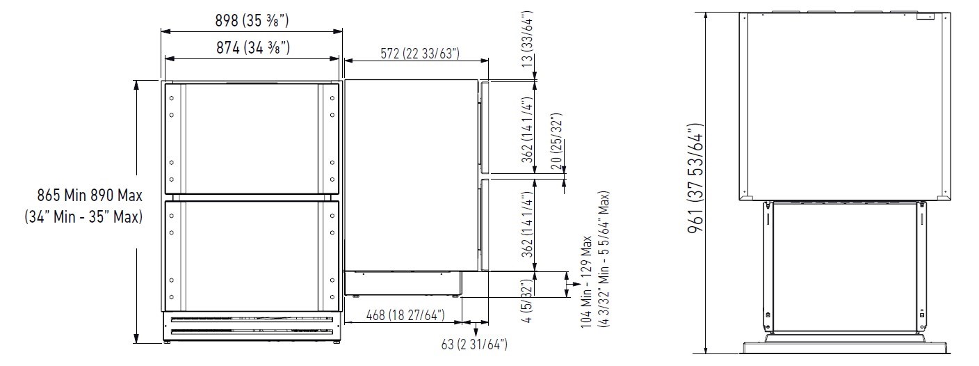 - Afmetingen apparaat (h x b x d): 865 x 898 x 572 mm