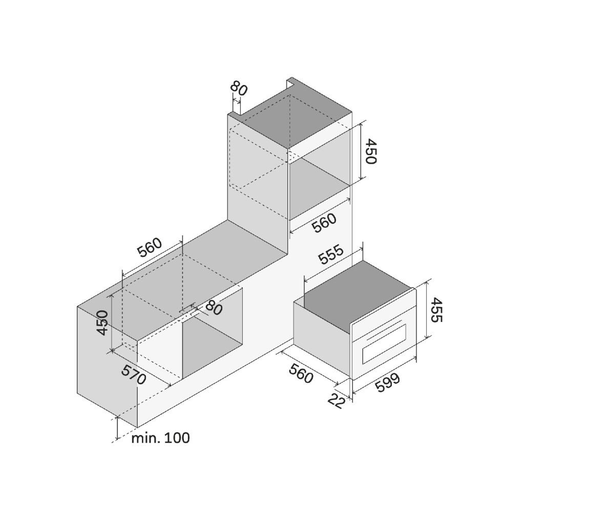 Controleer vóór bestelling de afmetingen m.b.v. de maattekening. Pak de oven uit, sluit de elektra aan op een standaard randaarde stopcontact en zet de oven vast volgens de montage instructie. Volg verder de voorschriften voor het eerste gebruik.