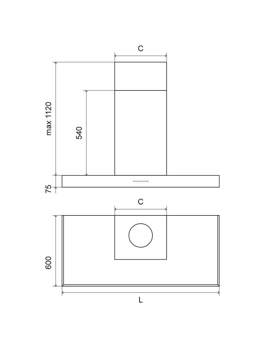 Controleer vóór bestelling de afmetingen aan de hand van de maattekening. Let hierbij ook op plaats & de diameter van het afvoerkanaal. Monteer de afzuigkap volgens de montage handleiding en sluit vervolgens het afvoerkanaal aan.