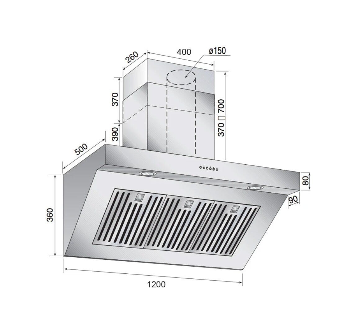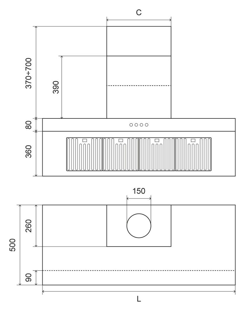 Controleer vóór bestelling de afmetingen aan de hand van de maattekening. Let hierbij ook op plaats & de diameter van het afvoerkanaal. Monteer de afzuigkap volgens de montage handleiding en sluit vervolgens het afvoerkanaal aan.