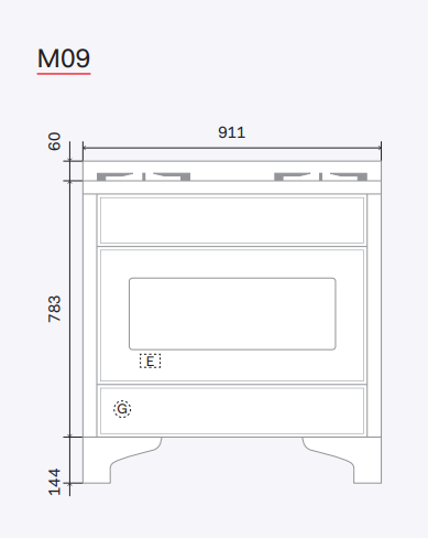 • Maattekening ILVE fornuis gas M096DNE3/BU
