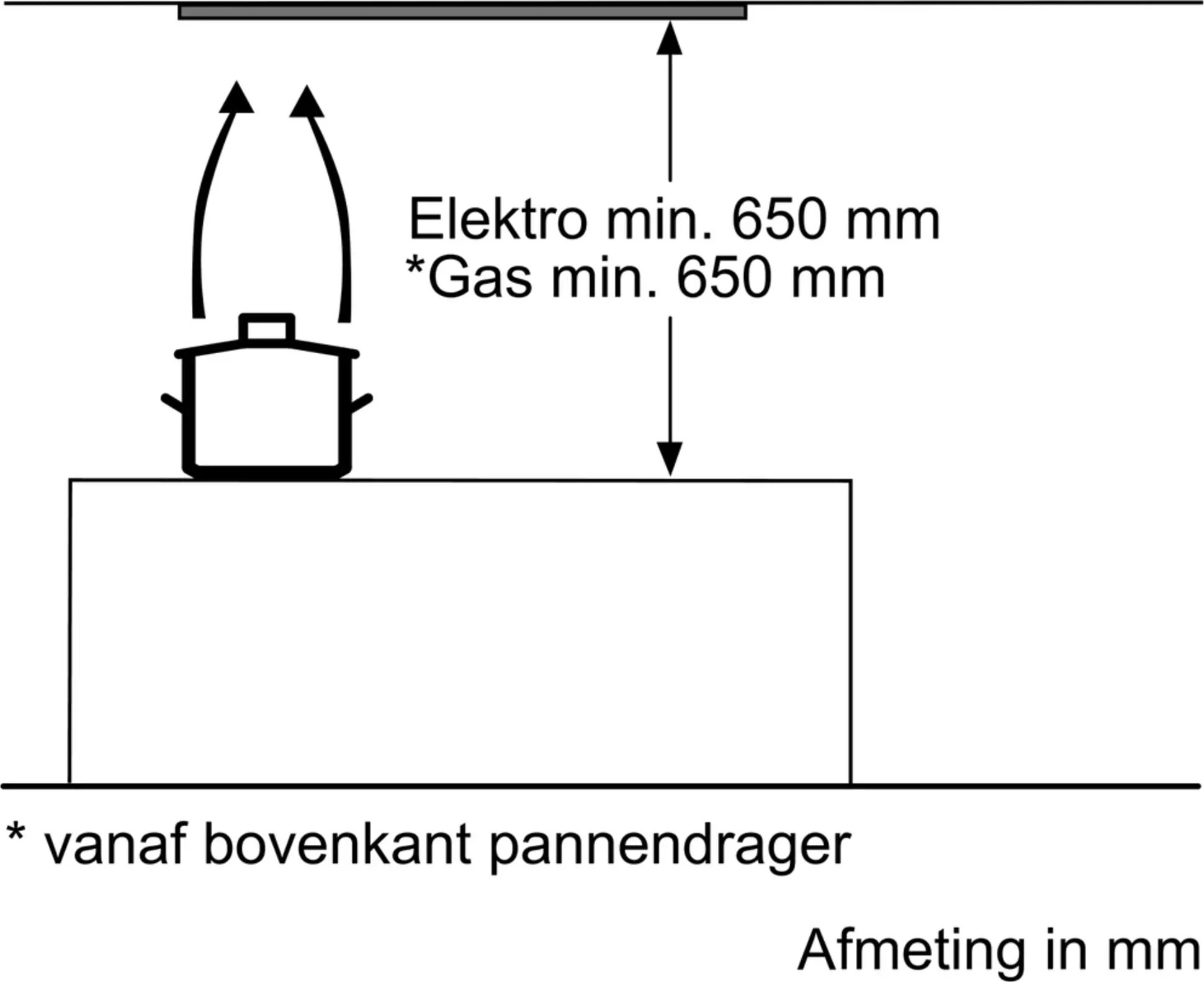 Prestaties bij luchtafvoer:- Volgens EN 61591 en EN/ IEC 60704-2-13 kan jouw apparaat de volgende waarden bereiken in de afzuigmodus: Stand 1: Afzuigcapaciteit 224 m3/h; geluidsniveau 46 dB (A) re1pW Stand 2: Afzuigcapaciteit 365 m3/h; geluidsniveau 57 dB (A) re1pW Stand 3: Afzuigcapaciteit 460 m3/h; geluidsniveau 63 dB (A) re1pW Intensieve stand 1: Afzuigcapaciteit 604 m3/h; geluidsniveau 68 dB (A) re1pW
