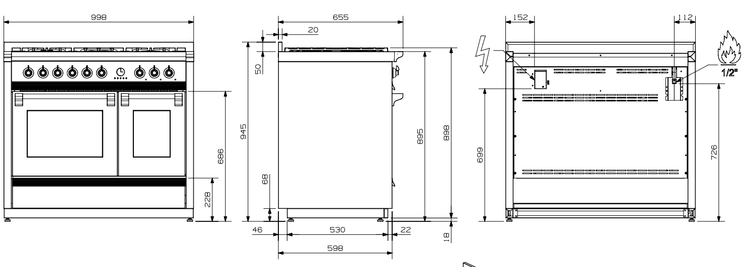 LET OP: meerfasen aansluiting. De elektra dient op een speciaal perilex stopcontact aangesloten te worden. Wij adviseren u dit door een erkende elektra installateur uit te laten voeren. TIP: bestel een hittebestendige gasslang mee voor de gas aansluiting.