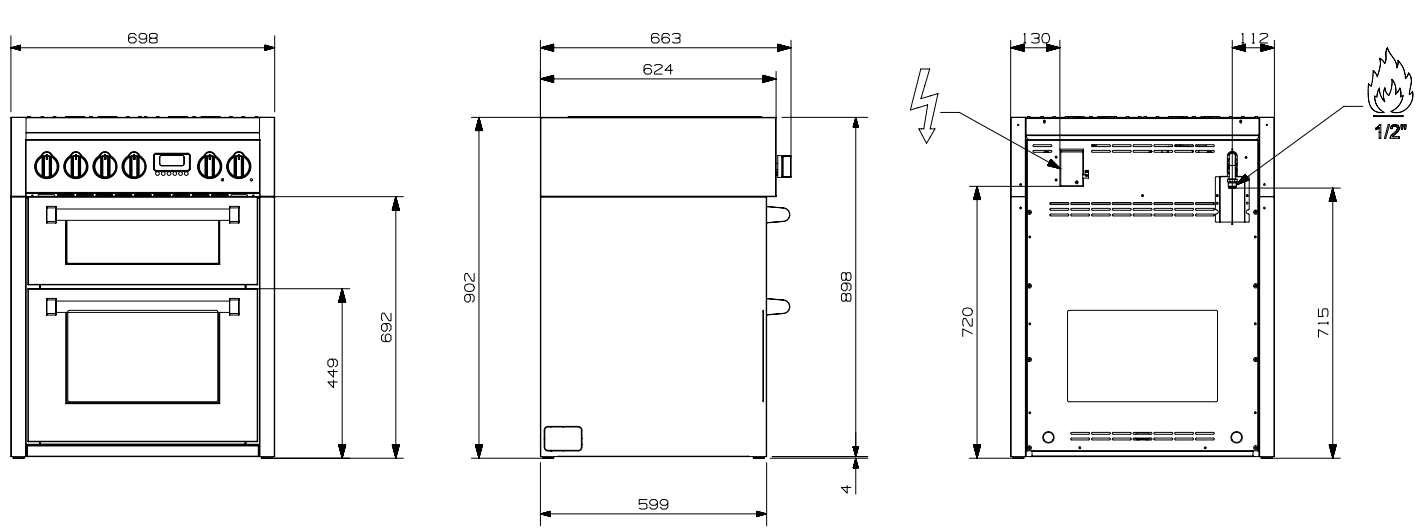 LET OP: meerfasen aansluiting. De elektra dient op een speciaal perilex stopcontact aangesloten te worden. Wij adviseren u dit door een erkende elektra installateur uit te laten voeren. TIP: bestel een hittebestendige gasslang mee voor de gas aansluiting.