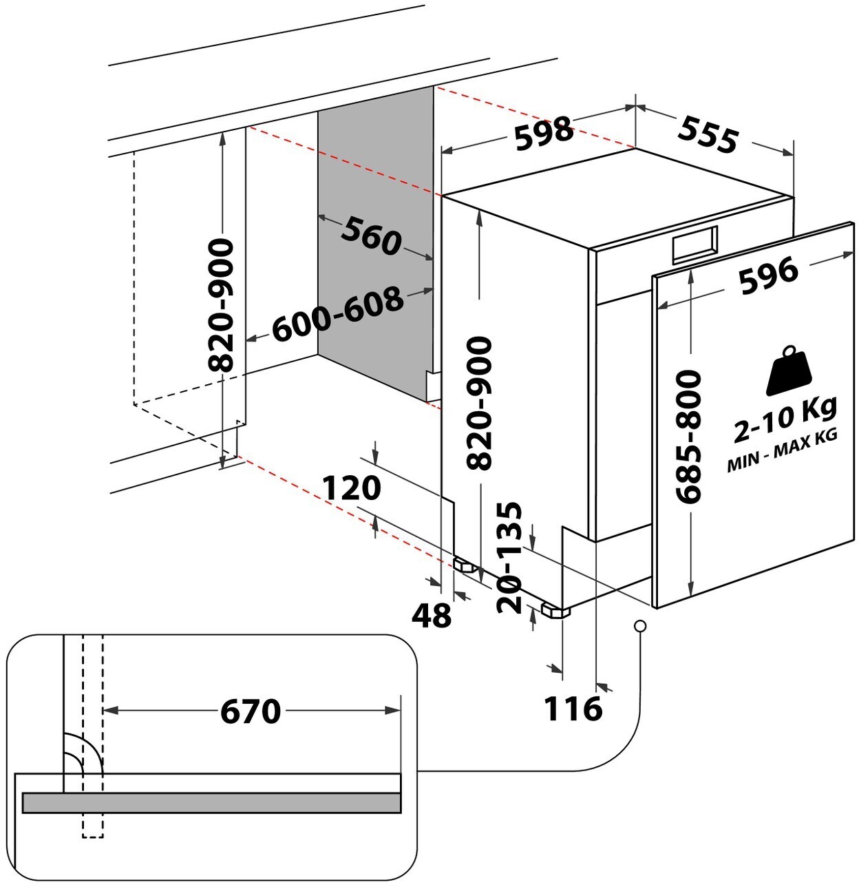 Meet de nishoogte en de hoogte van uw keukendeur zoals aangegeven op de tekening. Vul de maten in en controleer of deze vaatwasser past in uw keuken.